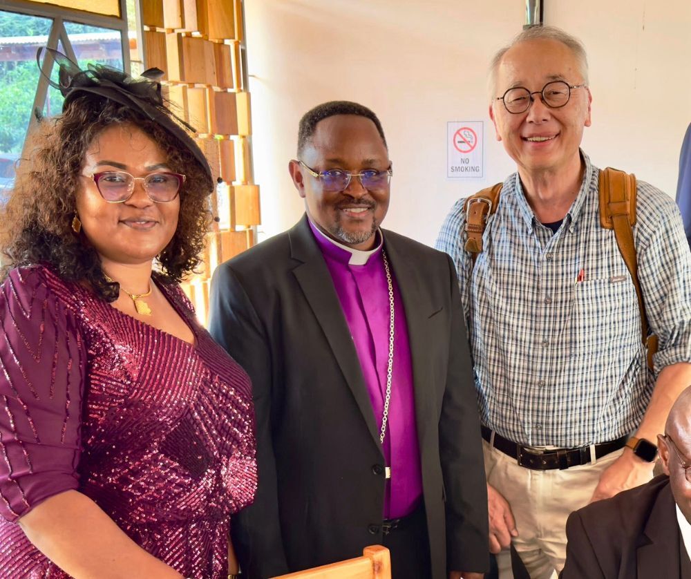 Deaconess Heavenlight Mono, Dr. Daniel Mono, and Dr. Naomichi Masaki. Dr. Mono was installed as Bishop of the Mwanga Diocese, ELCT, July 13, 2025.